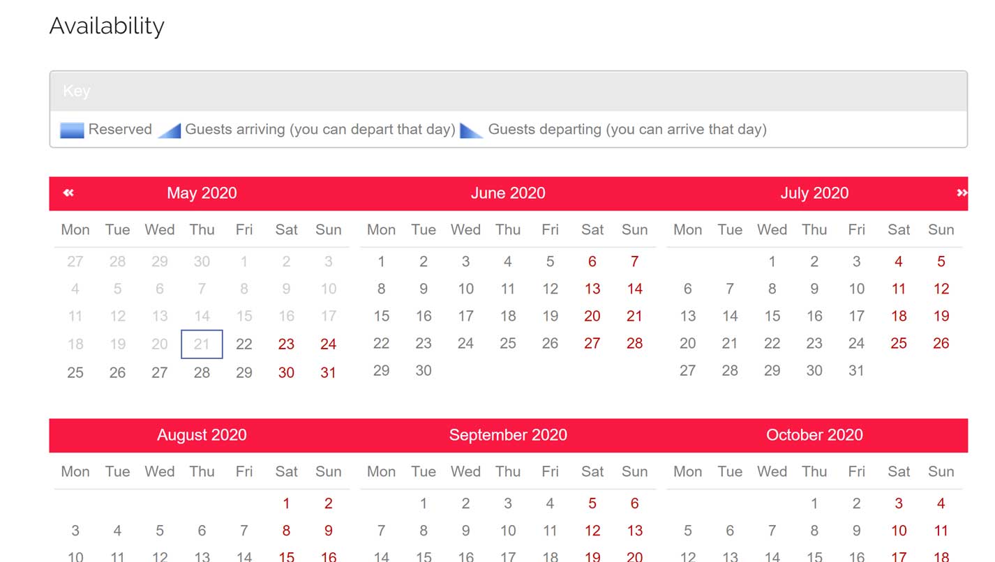 - Availability Calendar: It's important to import your current reservations so the calendar on your website is up to date, prior to going live. Please contact our Customer Success Team for more information