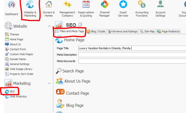- Property Overview: To update or add the description of the home, click on "Title / Bullet Points" and edit the Plain text description