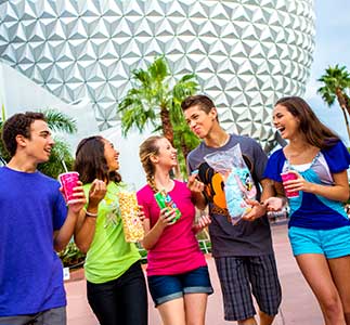 Epcot is a one of a kind place where you can experience eleven different nations, participate in interactive presentations and view the latest in cutting-edge technology – all in one vacation. The name “Epcot” is an acronym for “Experimental Prototype Community of Tomorrow,” and was originally envisioned by Walt Disney as a real community where residents would live and work in a technically advanced environment. However the end product turned out to be more of a theme park with a World’s Fair atmosphere. It is twice the size of the Magic Kingdom (300 acres,) and can easily keep a family busy for days on end. Over the years, a constant influx of new attractions within the park has kept it a favorite among visitors who are fascinated with the dazzling shows and amazing wonders from around the world. It is divided into two “worlds” or parks – Future World, which focuses on science and inventions, and technology from both the past and the future. The World Showcase features a variety of countries celebrating their culture, history and cuisine. Epcot is located within Walt Disney World Resort in Lake Buena Vista, Florida and is easily accessible from several exits off I-4 and the Highway 192 exit off the Florida Turnpike. It is open 365 days per year from 9:00a.m. with various closing times during the year.
