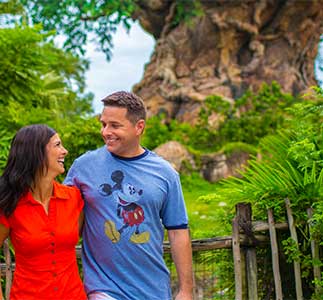The Animal Kingdom is Walt Disney World’s newest theme park designed around a vast assortment of animals – but it’s so much more than a traditional zoo. It’s a beautiful 500-acre “themed” park made up of seven different attractions centered on live animals and extinct dinosaurs. With over 1,000 animals, along with exotic flora, streams and stunning architecture, the Animal Kingdom transports visitors to exotic locales brimming with excitement and thrills beyond the imagination. The majesty and mystery of nature and animals comes to life in the Animal Kingdom and leaves visitors with a renewed respect for our Earth and its’ inhabitants. The Entrance Plaza at the Animal Kingdom contains Guest Relations, ATMs, phones, strollers and lockers, and is also the site of the only full service restaurant in the park. Although very large (five times the size of the Magic Kingdom,) visitors ride through most of the Animal Kingdom’s seven different attractions. As you travel through it, you’ll encounter wildlife, experience thrill rides and exciting shows, and be awestruck by some of nature’s most fascinating creatures, as well as meeting some of Disney’s most lovable characters. So get ready to “take a drive on the wild side,” when you enter Walt Disney World’s Animal Kingdom.